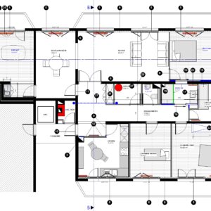 Chantier comprenant : déposes, plâtrerie, électricité, plomberie-chauffage, ventilation, peintures-papiers peints, menuiseries intérieures, agencements, parquets, menuiseries extérieures, carrelages