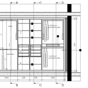Prestation d’architecture intérieure : relevés, esquisses, avant-projet, mood-boards, consultation d’entreprises, déclaration préalable, assistance aux marchés de travaux, suivi de chantier et réception des travaux.