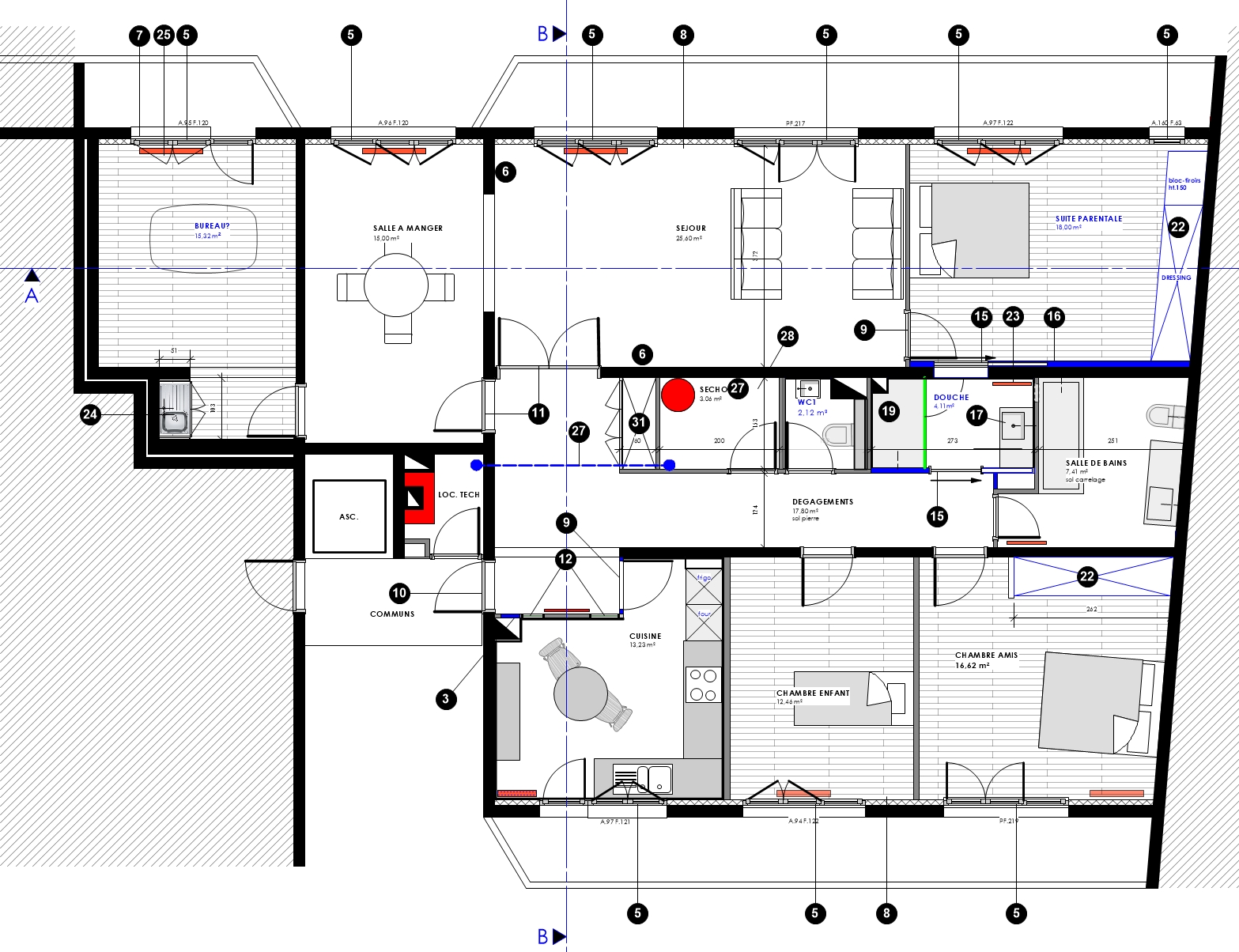 - Le mode constructif : la plupart des cloisons de distribution sont en béton armé.